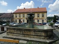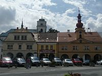Stavili jsme se na náměstí v obchodě. V hotelu Pošta je restaurace.