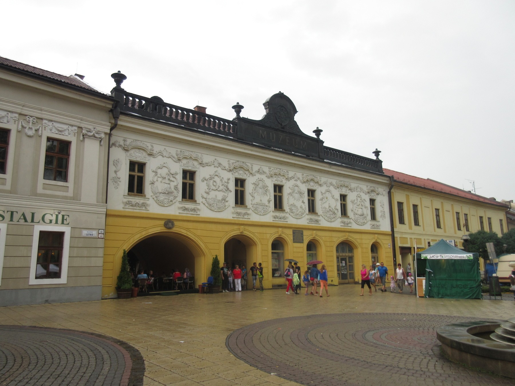 Ale to už jsme se dostali na Radniční náměstí, které je dalším divem města. Je to nejdelší náměstí v Evropě, má tvar hodně dlouhé a úzké čočky. Údajně patří mezi nejkrásnější náměstí na Slovensku. Protože bylo plné kolotočů a stánků, to nemůžeme až tak posoudit, ale vypadá zajímavě. Od r. 1992 je vyhlášeno městskou památkovou zónou. Lemuje ho větší množství historicky cenných domů, bohužel ani ty jsme si moc prohlédnout nemohli.