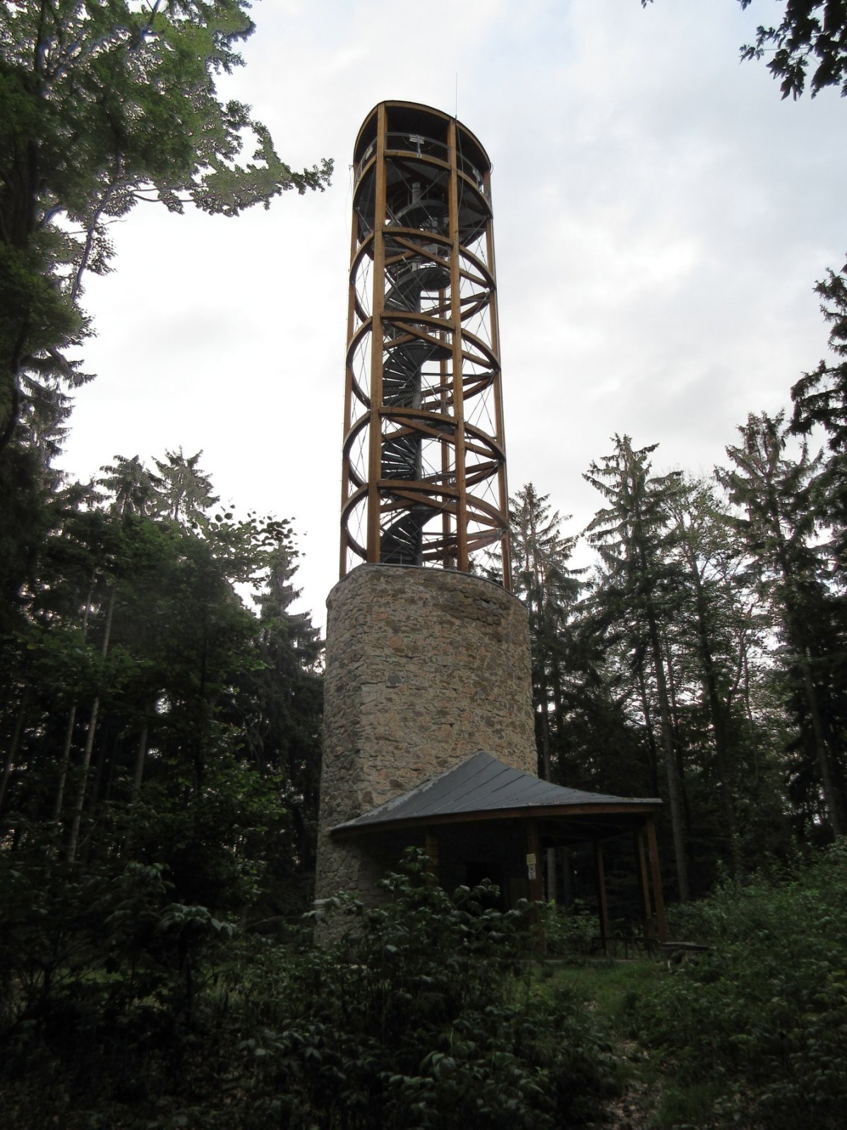 Na kopci byla r. 1941 postavena dřevěná trigonometrická věž, která se využívala i jako rozhledna. Bývalo vidět až do sousedního Rakouska. Při silné bouři r. 1957 se však zřítila. Konečně r. 2003 se začalo uvažovat o stavbě nové rozhledny, ale až r. 2012 se podařilo získat peníze. Rozhledna stojí na 9 metrů vysokém kamenném podstavci, na který navazuje kovová konstrukce s vřetenovým schodištěm a s dřevěnými prvky ve tvaru sférického trojúhelníku. Celá rozhledna měří 32,5 metru. Na zastřešenou plošinu ve výšce 28,2 metru vede 157 schodů.