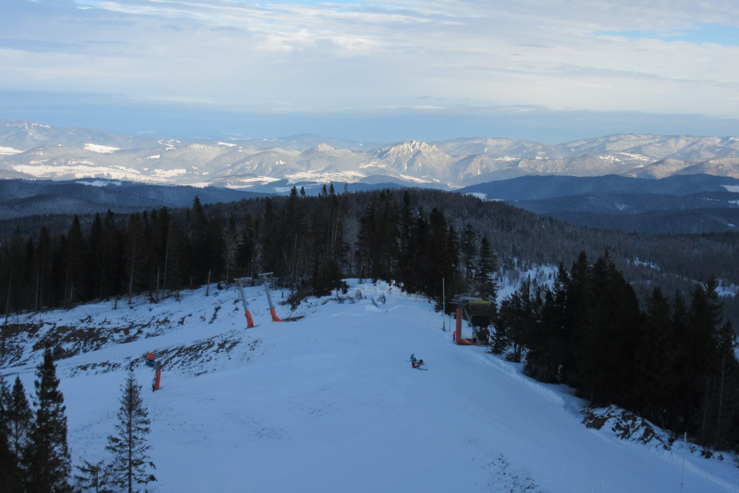 Pohled na lanovku z Jezerska se sjezdovkou Slalomák  autor: Kimca