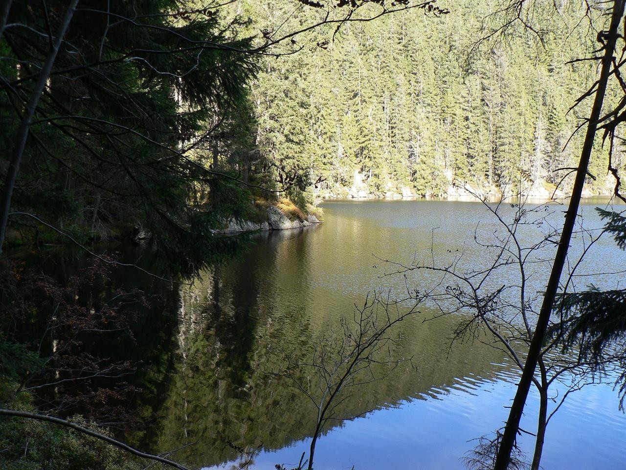 Čertovo jezero, pohled k hrázi jezera  autor: Bohumir
