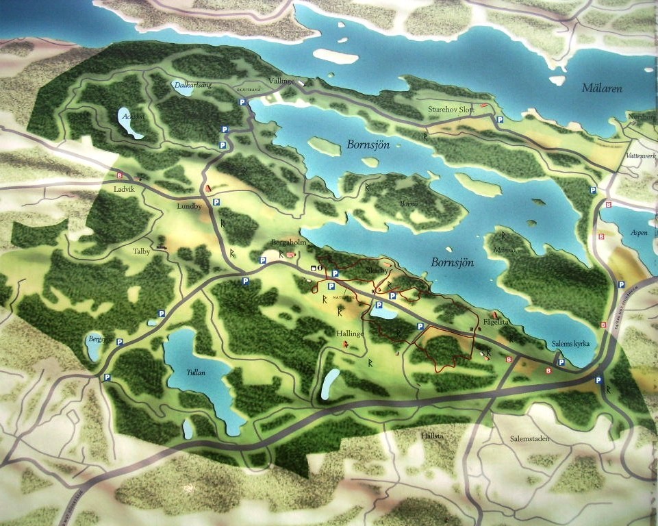 Vyrazil som z mesta Södertalje po našťastie nie moc frekventovanej ceste. Po opustení mesta už začína krásna, čistá príroda, ktorej je na prechádzkach po Švédsku veľa. Za jazerom Tulan, ktoré je na pravej strane som sa dostal na križovatku v Lunndby, odkiaľ som sa vybral pozrieť si jeden z výbežkov - poloostrov Borno, ktorý vybieha do jazera Bornsjön .