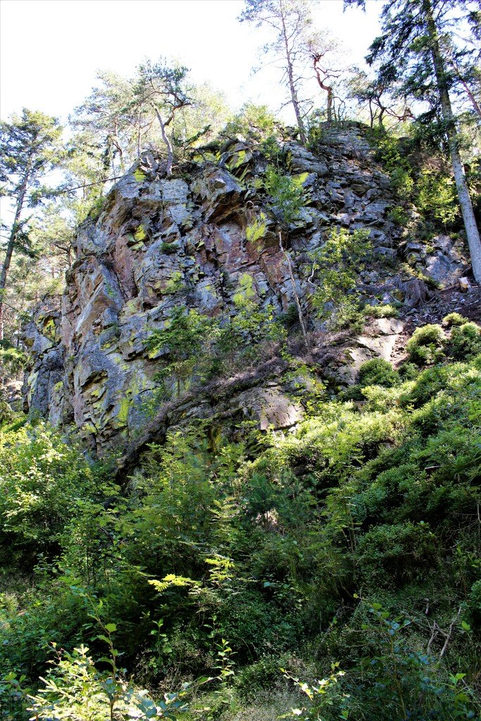 Skála nad řekou pokrytá lišejníkem