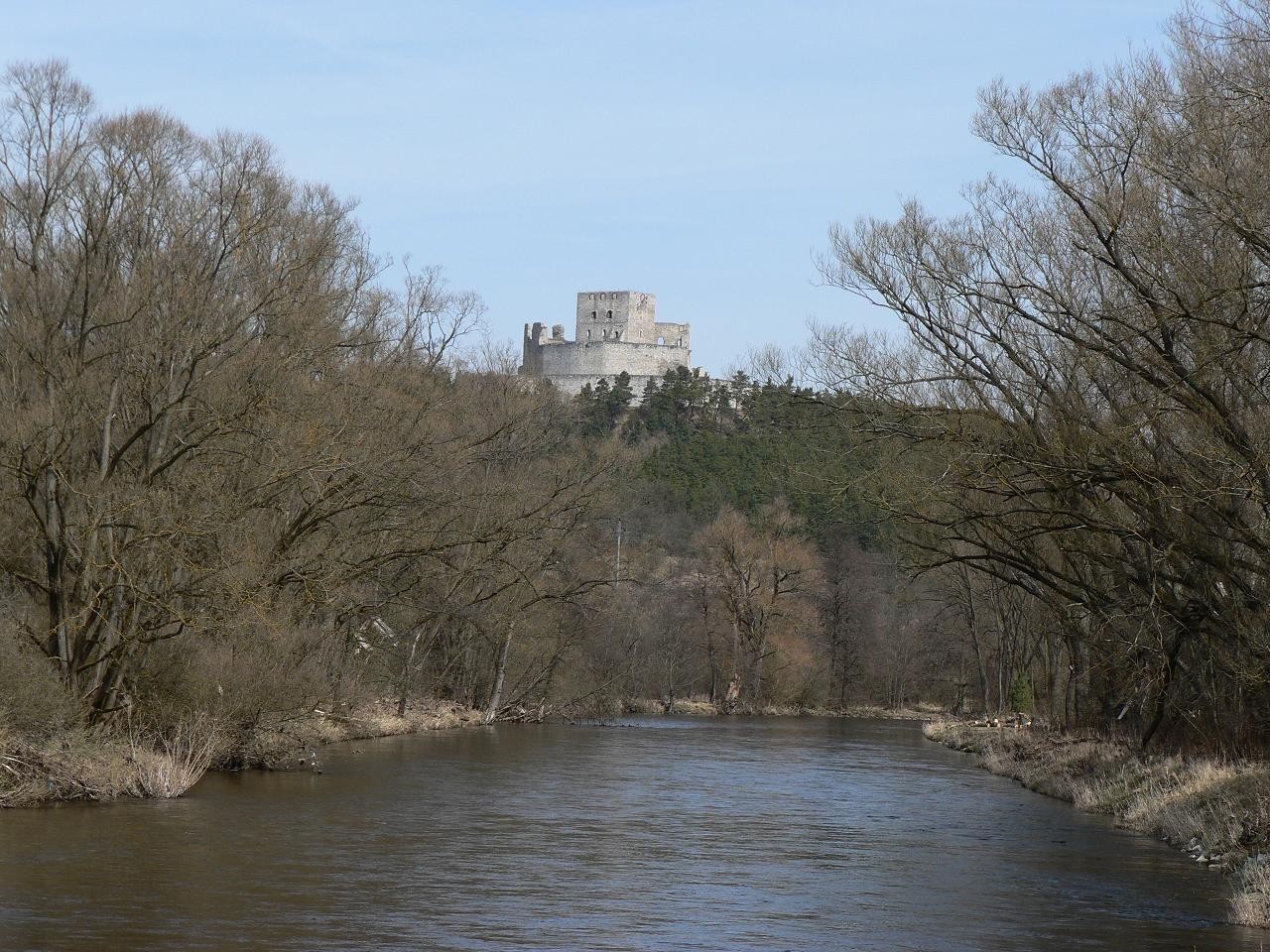 Žichovice máme brzy za sebou, ještě ohlédnutí na vzdalující se Hrad Rabí a po silnici se vydáváme do nedaleké vísky s hezkým názvem Čepice. Sem tam se mezi stromy objeví řeka a naše pozornost patří i vrcholům na obou březích řeky. Některé jsou pokryty lesem s převahou listnáčů a je na nich vidět, že jaro přebírá vládu nad přírodou. Půlhodinku máme za sebou mezi prvními domky Čepice. Ves je rozložena na obou březích řeky a jistě je jedinou vsí na celém toku řeky, která má dva mosty. Ten starší by si jistě zasloužil být technickou památkou. Mimořádná je i protipovodňová, asi 1 km dlouhá hráz, která má za úkol uchránit obec před povodněmi. Část obce na levém břehu je starší. Náves zdobí hezká kaplička z 19. století. Vedle je pomník obětí obou světových válek. Za vsí je známé vodácké tábořiště a na opačné straně stojí nový most. Potkáváme letos první vodáky a jejich ahoj se rozléhá nad hladinou. Naše cesta pokračuje k nedalekému opuštěnému lomu na vápenec. Příroda si s těmito jizvami sice dokáže poradit, ale stále je mezi námi hodně lidí, kteří si tato místo pletou se smetištěm. Vracíme se k řece a na pravém břehu vcházíme do lesa. Právě rozkvétají statisíce jaterníků a cestu lemují nádherné modré koberce. Les končí, přecházíme Podmokelský potok a míříme k Velké Chmelné. Hospoda má zavřeno a tak se jde dál kolem Malé Chmelné k Černému mostu. Ještě pohled na okolní hory – Svat, Kalovy a na západě bájný Svatobor a jsme na sušickém nádraží.