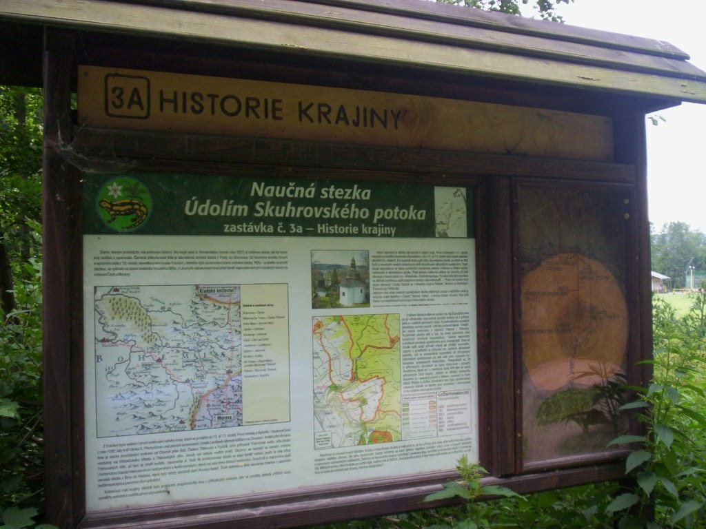 Pěkná naučná stezka a její náplň.Čistá voda ve Skuhrovském potůčku.