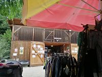 Najíst se můžete v bistru Kravín, v zámecké restauraci, v kavárně Kafe z ruky nebo v Holandském selském domu, kde sídlí galerie "Na konci světa", v té jsme se najedli my, je tam hezké venkovní posezení a hlavně ohrada, kde jsou lamy.