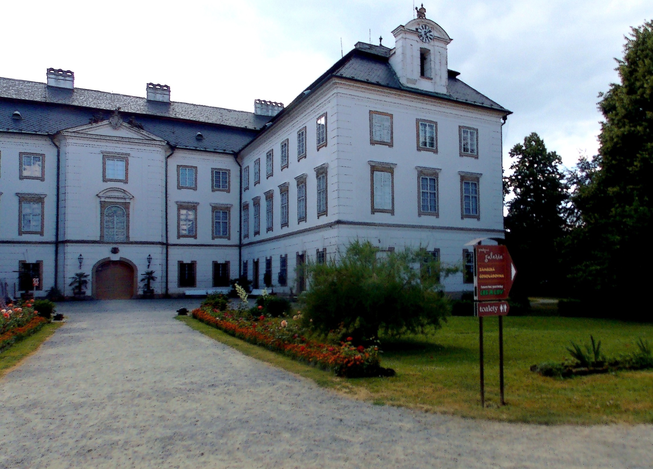 Tentokrát jsme si prohlédli park, který zámek obklopuje. Naše první kroky směřovali hned za branou vpravo, kde je v jedné zámecké budově Čokoládovna a galerie Mariette. U dveří mají vyvěšenou nabídku, co si zde návštěvníci mohou prohlédnout.