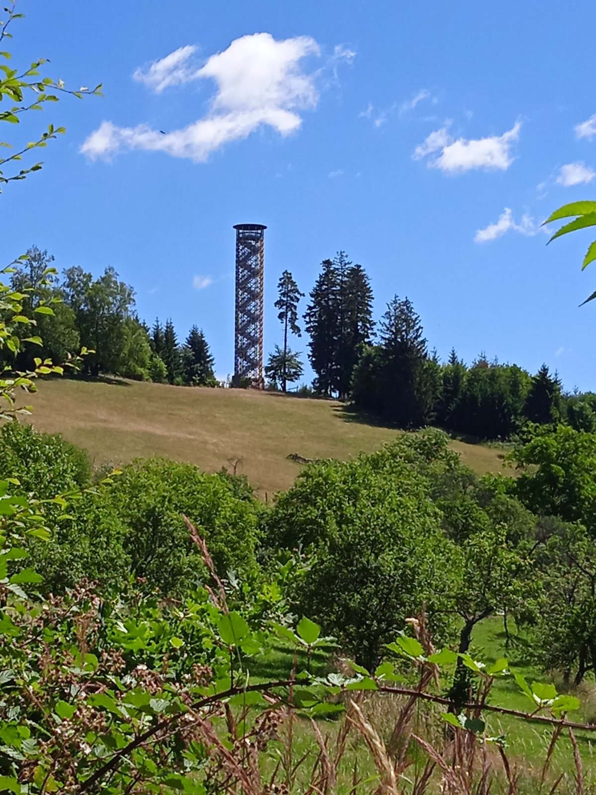 Od autobusové zastávky Syrákov nás k rozhledně dovede žlutá turistická značka.Stoupání je zprvu mírné,později trochu prudčí,ale není to nic hrozného.Takže cesta celkem fajn.