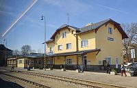 68 km dlouhá trať z Tábora přes Milevsko a Písek do Ražic byla zprovozněna v roce 1889. Není elektrifikovaná (s výjimkou úseku Písek - Ražice), tak po ní jezdí motoráky. Ještě loni to byly elegantní Rakve 842, letos jsem už jel fungl novou Pesou. Cesta trvá asi hodinu a čtvrt a vůbec není nudná. Trať se vine mezi loukami a poli, poskytuje pěkné výhledy a projíždí i mnoha hezkými lesy, přičemž se pohybujeme ve slušné nadmořské výšce (kolem 500 m n. m.). Uvidíme i několik pěkných nádražních budov (dokonce i mnoho nejmenších zastávek má vymazlenou budovu) a bývalých vechtroven. V lese před Sepekovem přejíždíme docela hluboké údolí říčky Smutné. Následuje Milevsko, kde stojí za to přerušit cestu a zajít do města. Jednak se tu dá dobře najíst a taky občerstvit ducha návštěvou nejstaršího kláštera v Čechách či přilehlého parku. Kousek za Milevskem, to se ještě držíme ve výšce, je krajina víc zvlněná a výhledy zajímavější. Taky si tu užijeme klasické drncání, koleje totiž mají mezery. Za Jetěticemi trať ostrým obloukem klesá k Červené a za ní k Vltavě, kterou překonává po vysokém ocelovém, čerstvě zrekonstruovaném viaduktu. Za ním pak vystoupáme lesem k Vlastci. Poslední parádní budova před Pískem je v Záhoří a pak už dost prudce klesáme a krásným lesem objíždíme kopec Sýkora. Otevře se pohled na město a chvilku nato vjíždíme do Písku. Ten má dvě nádraží a jednu zastávku. Trať pak pokračuje elektrifikovaným úsekem přes Putim do Ražic, kde navazuje na trať Strakonice - Č. Budějovice. Krajina tady je plochá, ale pěkná. V Putimi můžeme vystoupit a udělat si procházku podél soustavy rybníků. Je to tam krásné a dá se tam potkat spousta zajímavého vodního ptactva. V Ražicích u přejezdu láká návštěvě malé, ale zajímavé železniční muzeum. Na nádraží je i tabule na paměť návštěvy císaře Františka Josefa v roce 1874, kdy se tu zastavil cestou z manévrů a vítala ho tu písecká delegace (v Písku tehdy ještě neměli nádraží).