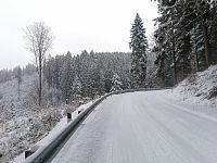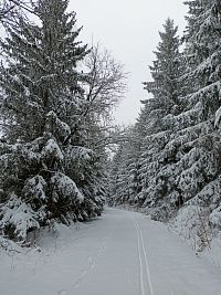 Z vesnice Pulčín už nás směrovky navádějí k ledopádům.Cesta sněhem je prošlapaná a stezka dobře značená.