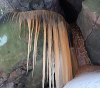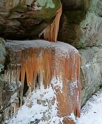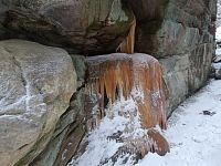 Ty první jsou ukryté v malém skalním městěčku na úbočí vrchu Hradisko.Krásně do červena zbarvené ledopády tady padají přes skalní převisy a vytváří opravdu jedinečnou podívanou.