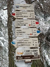 Po prohlídce ledopádů se vrátíme na turistickou značku a jdeme přes vrchol Hradisko kolem skal zpět.