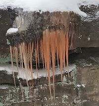 Zbarvení některách ledopádů zpusobuje ,nikoliv železo obsažené ve skalách,jak si dříve lidé mysleli,ale mikrospocická sněžná řasa ,žijící ve sněhu a ledu.Tuhle terorii potvrdila v roce 2008 řada vědců ,kteří obdobné úkazy pozorují třeba ve Vysokých Tatrách .