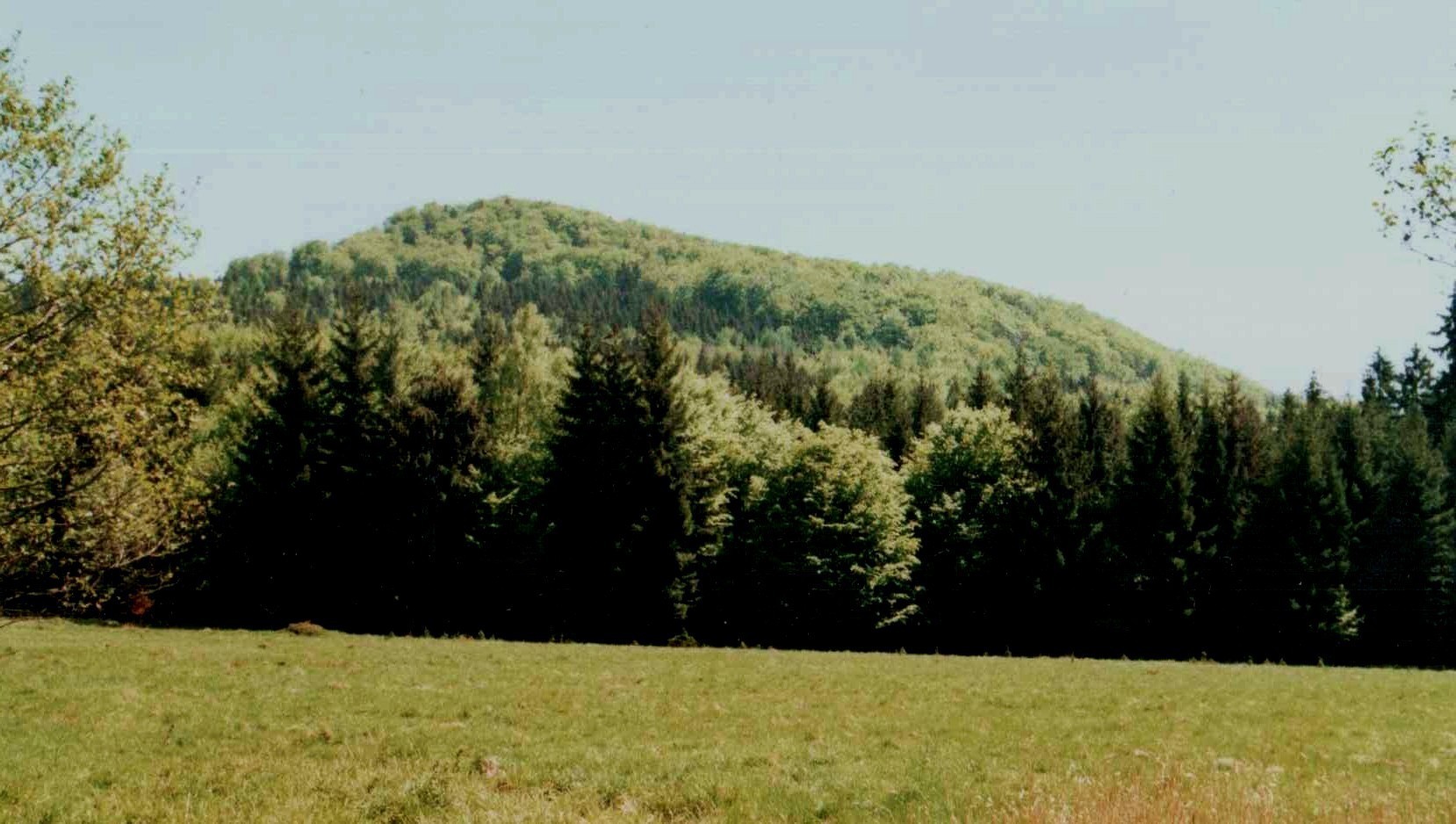 Po silnici jsme došli až na rozcestí pod Malou Tisovou, kde jsme odbočili po červené k západu. Ta nás dovedla na další rozcestí, ke Křížovému buku. Kecli jsme do trávy a kochali se. Před námi byla hora Javor.