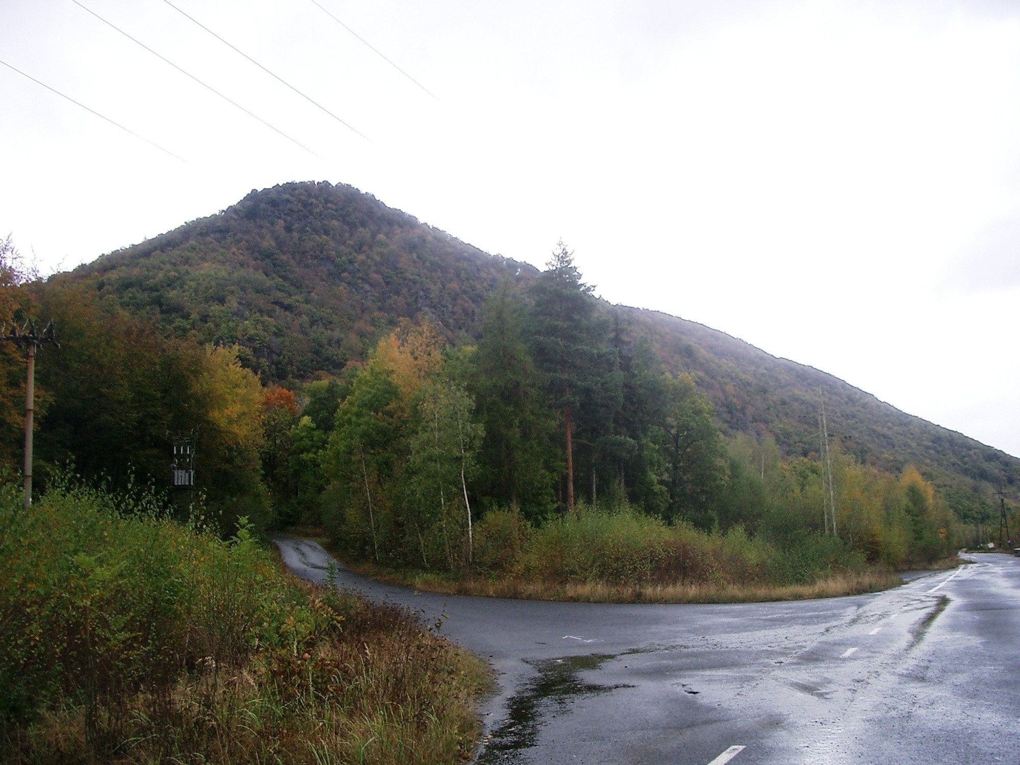 Tuhle oblast už máme dost prochozenou a tak hledáme další trasy a opět spíše neznačené. Rozhodli jsme se vystoupat skalní stěnu na Starý Žeberk od plochy povrchového dolu. Vydali jsme se od Vysoké Pece starou silnicí , kterou se dříve jezdilo do Litvínova, a která je již dnes zrušena a končí najednou na hraně šachty. Příznačně je tu umístěna keška Nakonci světa.