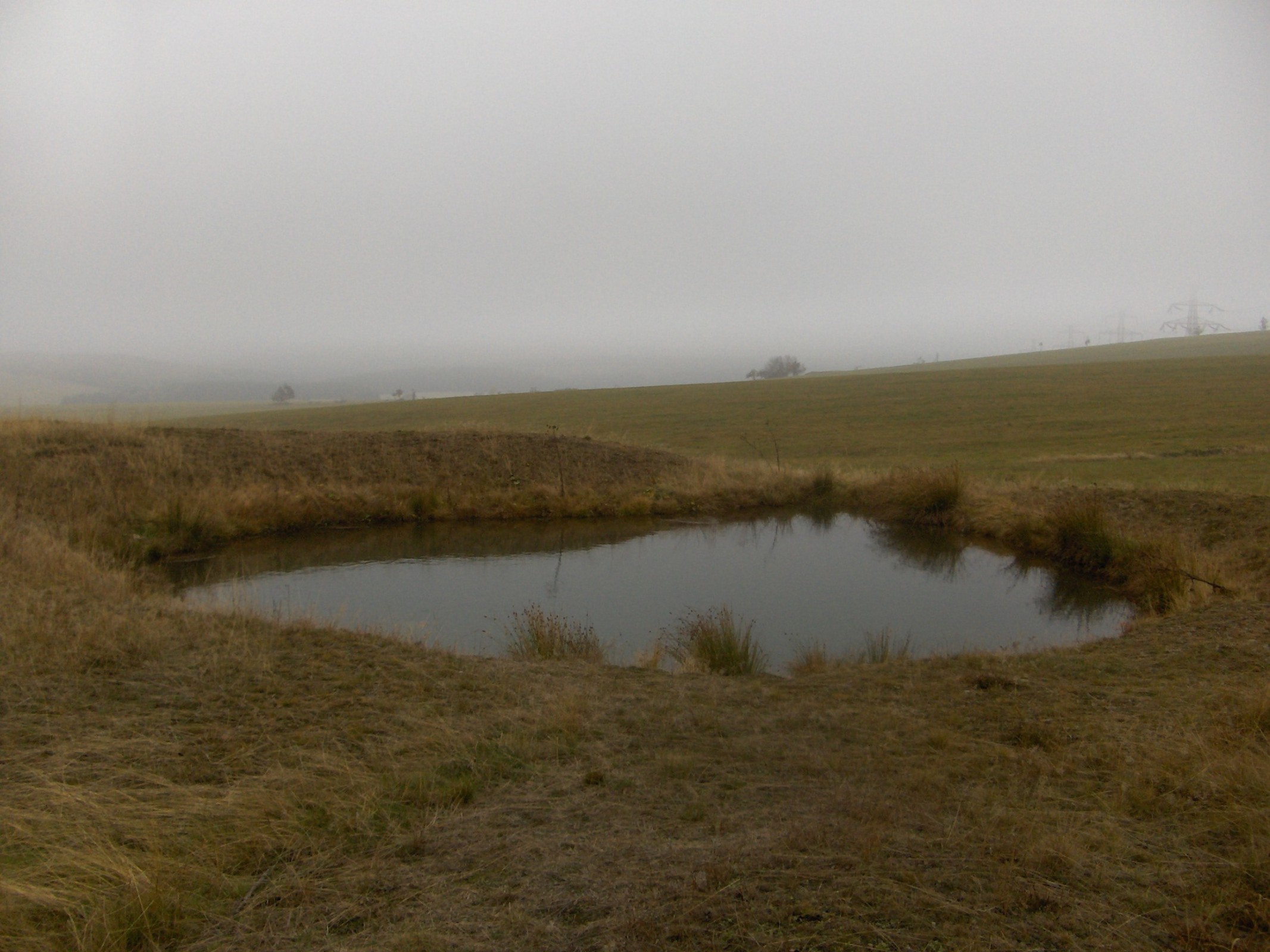 Přecházím hlavní silnici a polní cestou jdu k větrným elektrárnám. Poblíž jedné z nich je tak zvané "hornické oko". Je to malé jezírko, které vzniklo na Místě propadu staré šachty. Na loukách v okolí jsou vidět sejpy - zarostlé hromady hlušiny, zbytky po rýžování cínové rudy.