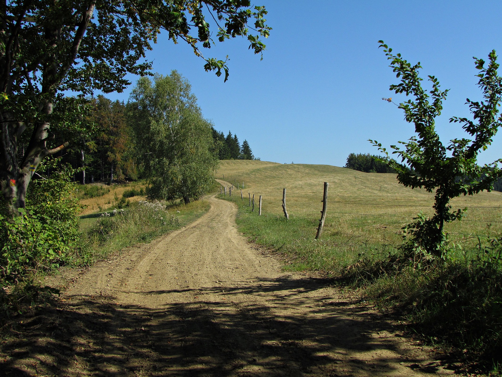 Loučíme se s Rozhlednou, pohlednou oslicí a pokračujeme tentokrát po zelené a trase NS Kobzáňův chodník. ( Na Valašsku se v poslední době se všemi těmi Naučnými stezkami snad roztrhl čertovi pytel) ... Čeká nás sestup po lukách s občasnými zpětnými pohledy na Vartovnu k lesu a pak už po hřebeni lesem směr sedlo Syrákov. (Název motorestu Sirákov se - nevím proč - píše s měkkým " i ", což uvádí mé poslední neodumřelé buňky v mozku, pamatující si ještě vyjmenovaná slova a pravopis, v nevýslovný zmatek ...)