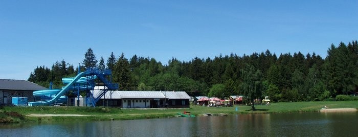 Občerstvení se zahrádkou u přírodního koupaliště v obci Suchý. Bohatý sortiment, vyhled na vodu.