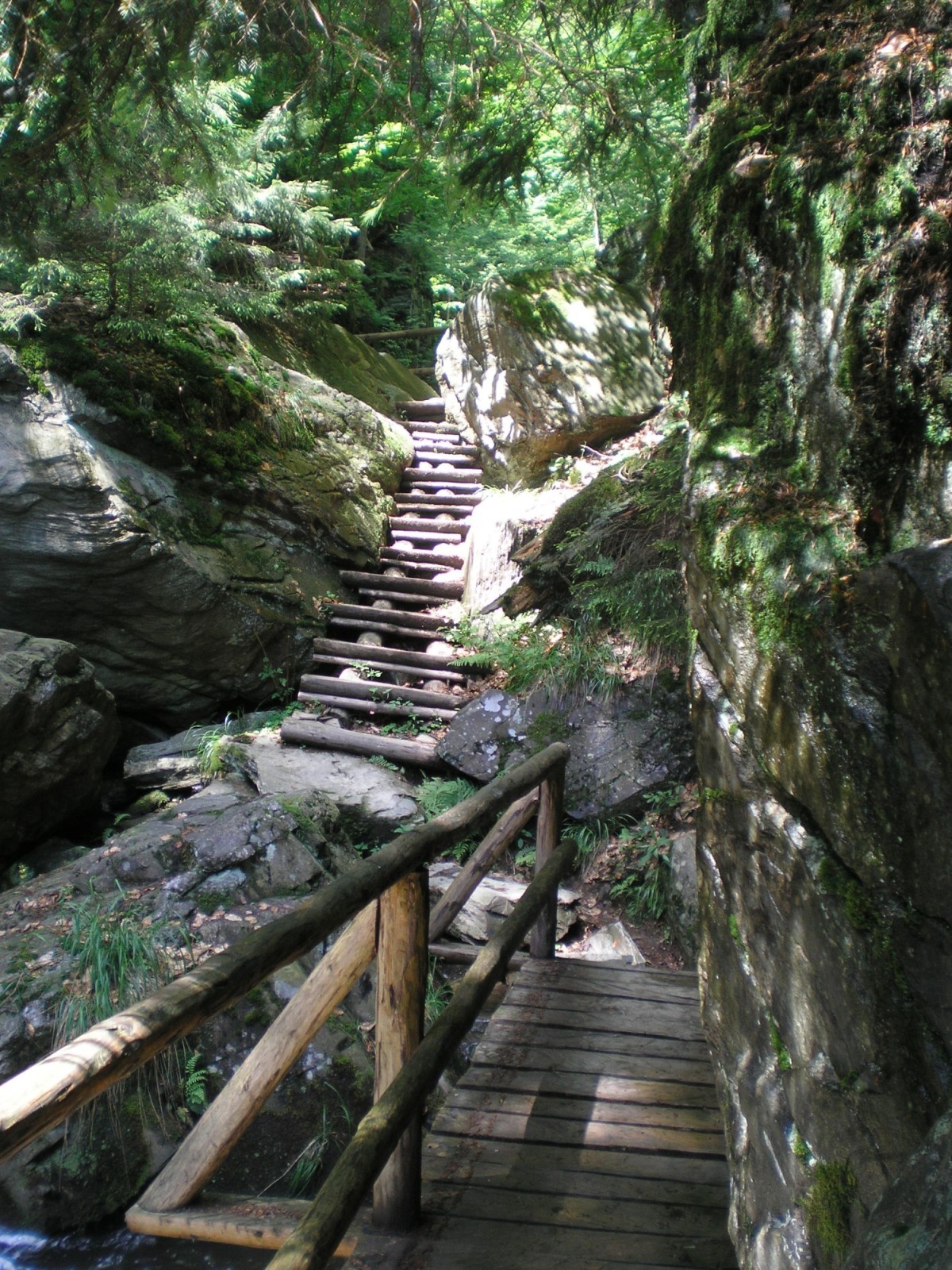 Z vodopádu jsme pak pokračovaly dále po zelené směr na na soutok Huntavy a Oslavy ,Valšův důl a Sovinec.Je možno také jít z vodopádu po červené přes Fialův Mlýn a obec Rešov ,kde je také místní restaurace.Obě tyto trasy jsou přibližně stejně dlouhé.Z vodopádu až na Sovinec je trasa dlouhá asi 8,5km.z hradu Sovinec je možno jet zpátky do Rýmařova busem.