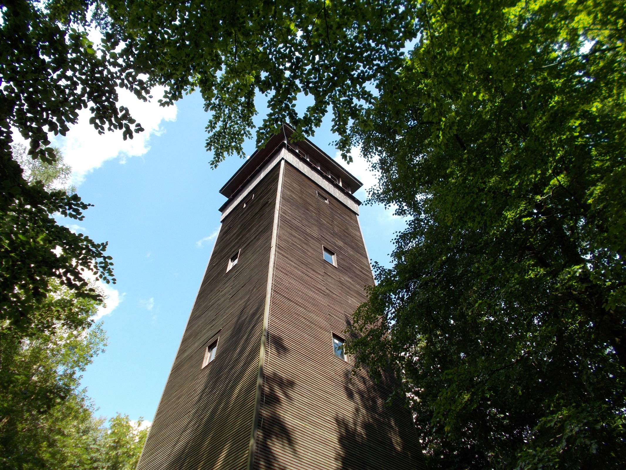 Rozhledna, jejíž výška je 29 metrů, vyhlídková plošina je ve výšce 24 metrů a aby jsme se na ni dostali musíme vyšlapat 133 schodů, byla otevřena 28. září 1996. Tato nová dřevěná rozhledna na kamenném základu byla postavena na místě, kde již v roce 1933 byla Klubem českých turistů vystavěna rozhledna původní. Ta však v roce 1953 po zásahu bleskem vyhořela, a když bylo od této doby několik snah o obnovení tohoto krásného vyhlídkového místa, podařilo se to právě až v roce 1996. Z rozhledny, kterou v současné době spravuje KČT Šumperk, je krásný výhled na Šumperk, Hrubý Jeseník, Rychlebské hory, Králický Sněžník, Orlické hory a Hanušovickou vrchovinu, a dále se nabízí výhled i do rovinaté Hané, které ve výhledech dominuje Svatý Kopeček u Olomouce.