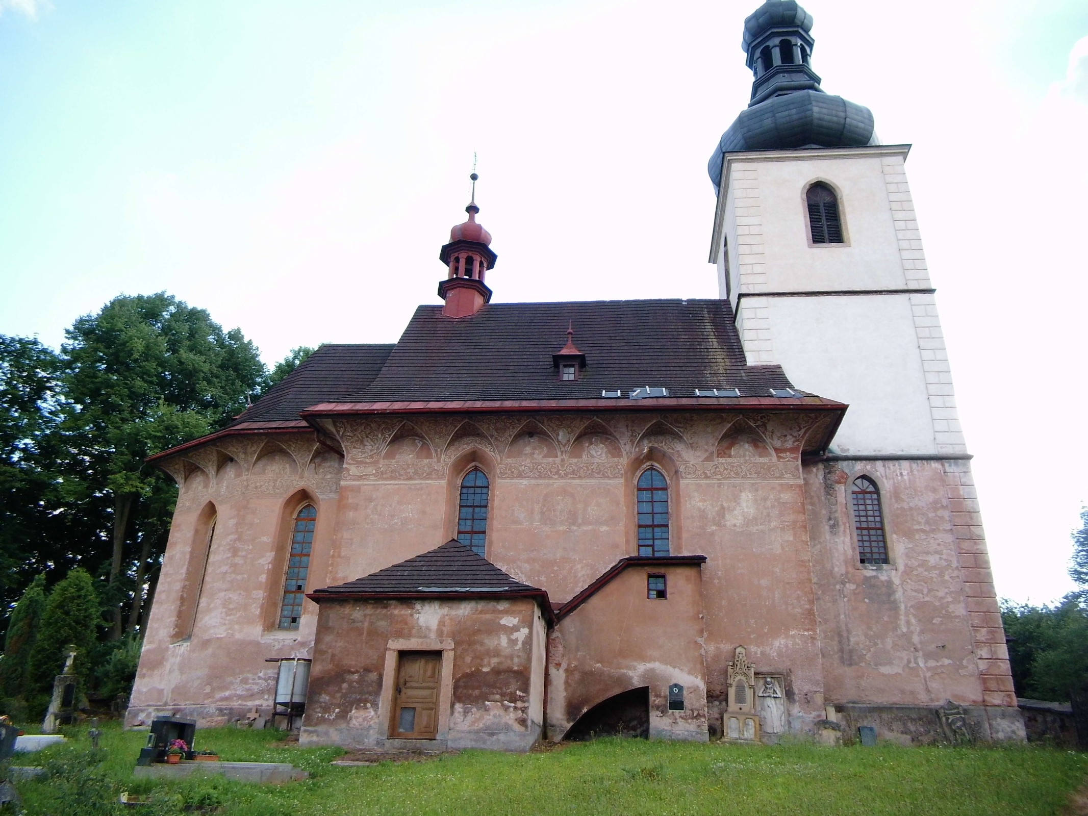 Kostel sv. Jakuba Staršího, byl původně gotickýa v roce 1589 byla zahájena přestavba na smíšený goticko renesanční styl. Je to mopravdu nádherná stavba, jejíž fasáda je zdobena sgrafity. U kostela jsou zbytky hřbitova a dřevený kříž s Ježíšem.