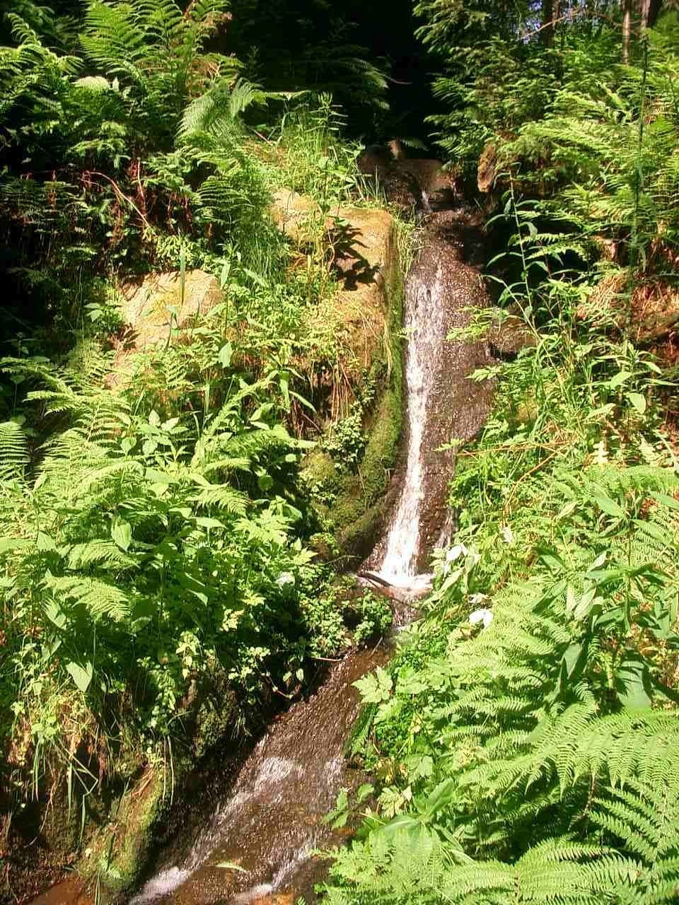 Potok teče přes kameny a vytváří peřeje,v nichž můžeme vidět pstruhy. Postupujeme pozvolně dolů, zátočinami. Přejdeme další mostek.
