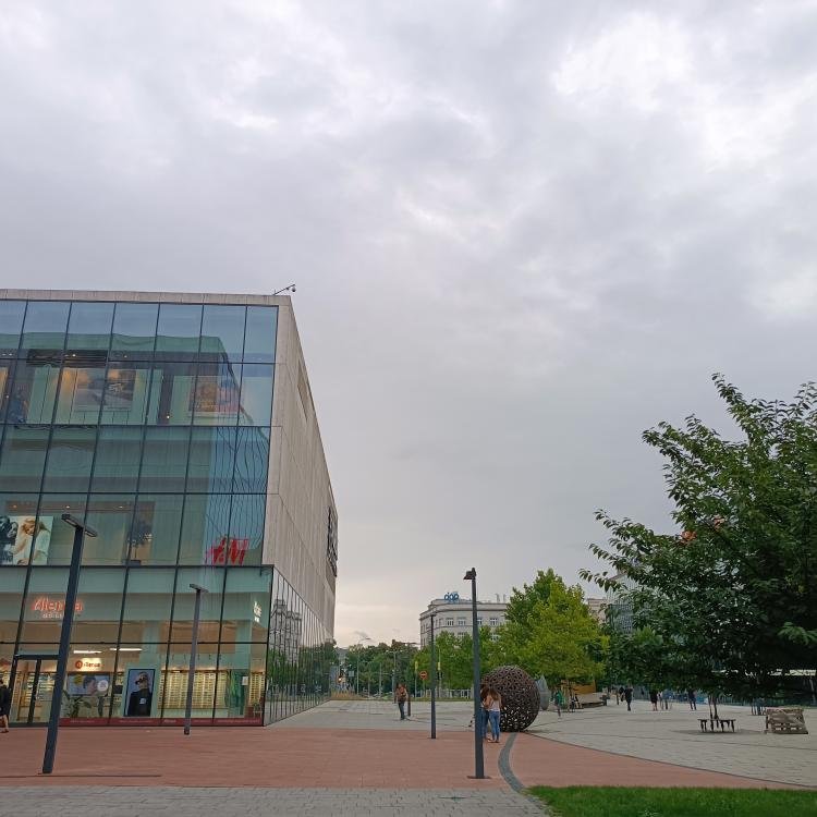 Za sochami před obchodním centrem Forum Nová Karolina v Moravské Ostravě