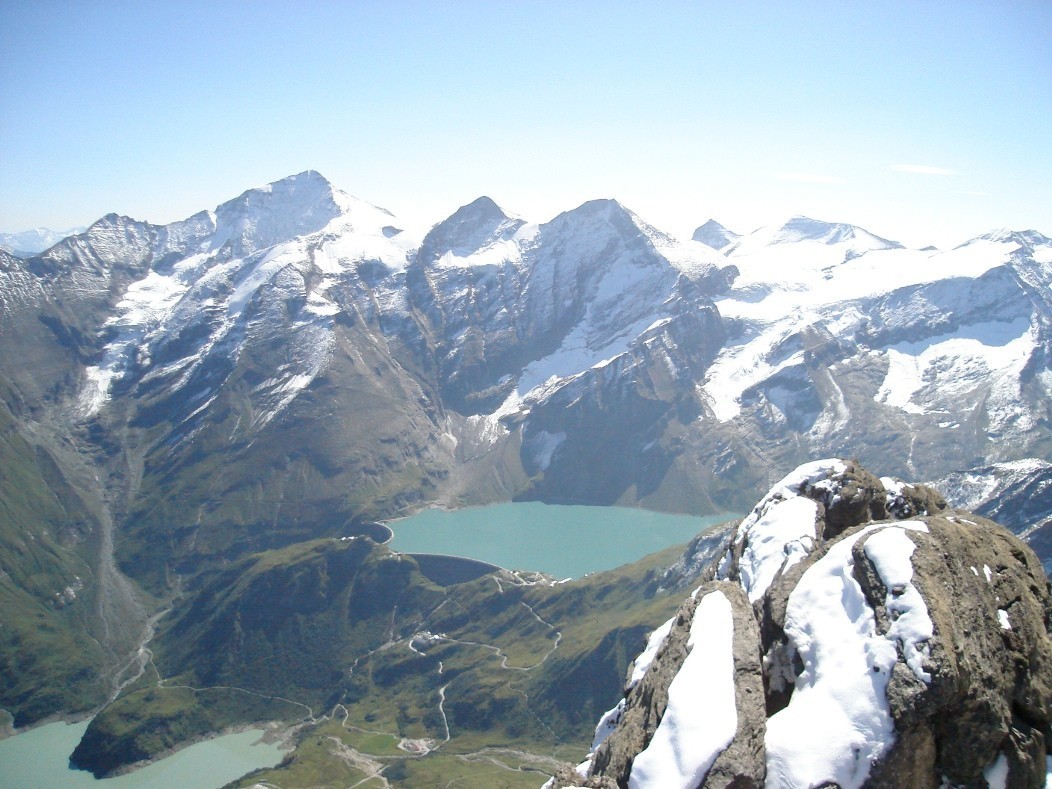 Fantastický pohled z vrcholu je jihovýchodním až jižním směrem, kde se hned nad přehradní nádrží Stausee Mooserboden (2.036 m n.m.) tyčí Grosses Wiesbachhorn (3.564 m n.m.), Hinterer Bratschenkopf (3.401 m n.m.), Klockerin (3.425 m n.m.) a další třítisícovky. Severozápadním směrem pod námi vidíme ledovec, který bývá hlavně v zimním období cílem mnoha lyžařů. Od severozápadu po severovýchod (od Kitzbühelských Alp až po masiv Dachsteinu) vidíme další pohoří.