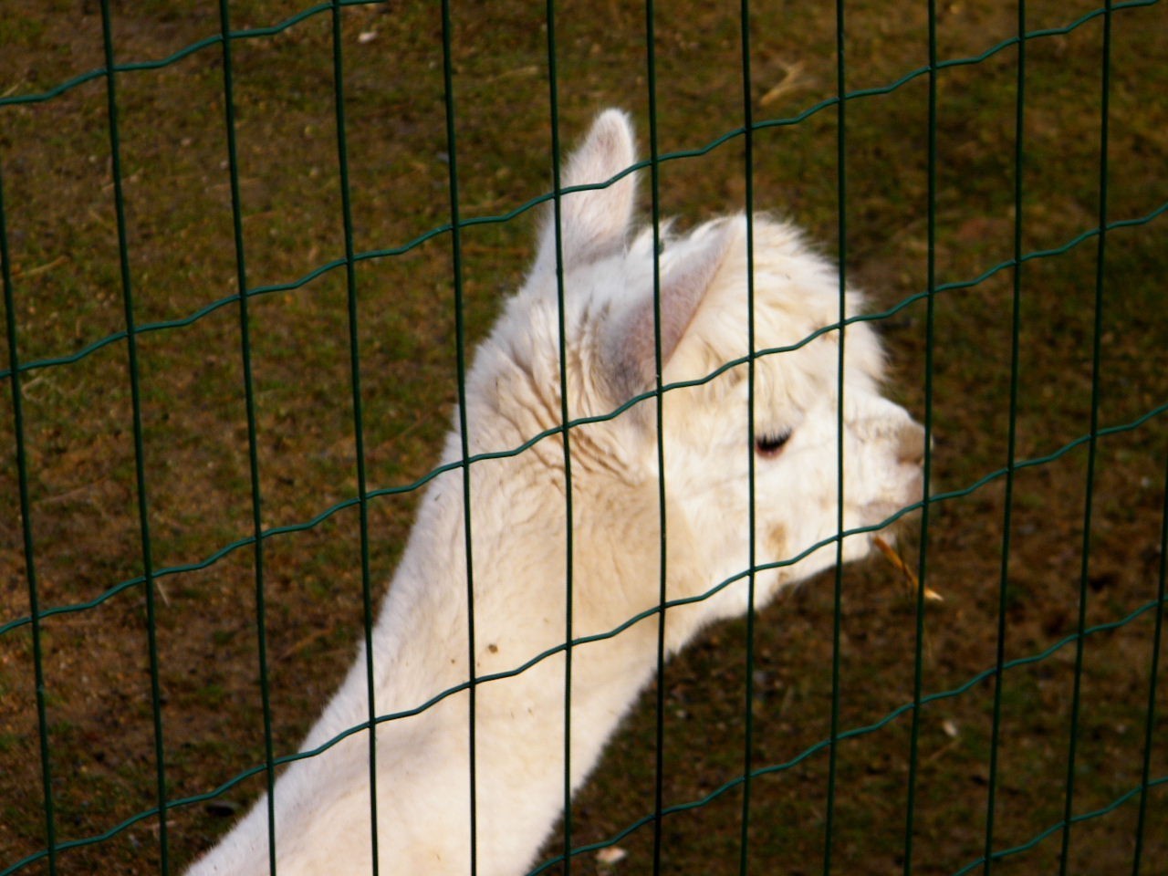 Část zooparku s exotickými zvířaty byla samozřejmě zavřená. Není to tu pražská ZOO s vyhřívanými pavilony. Před tímhle zákoutím bylo jen parkoviště a nějaké informační cedulky. K otevřené části ukazovaly cedulky se symbolem velblouda. Nebylo to daleko, napřed sestoupat k potoku, potom kousek nahoru, a už jsme u ohrady. Zvědavá bílá lama nás přišla přivítat. Potom si zapózovala trochu dál od plotu.