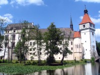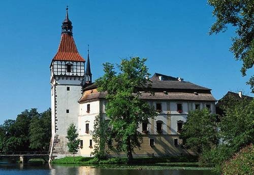 Vodní zámek Blatná leží 95 km jižně od Prahy a přibližně ve stejné vzdálenosti od rakouských a německých hranic. Uprostřed bažin byl postaven blatný hrad, o němž je první písemná zmínka r. 1235 a podle kterého dostala své jméno i při něm vyrůstající osada. nejstarší část hradu je částečně dochovaná románská centrální kaple z doby kolem roku 1220.