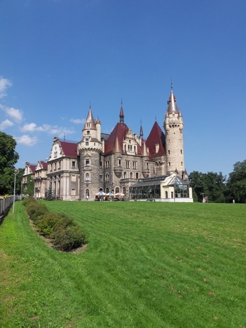 Na konci srpna jsme vyrazili navštívit naše severní sousedy a jejich Zámek Moszna ve stejnojmenném městečku na jihu Polska. Jeli jsme autem, na závěr naší mini dovolené pod stanem v Jeseníkách. Přes hranice do Polska jsme projeli ve Zlatých Horách a pokračovali po silnici č.40 přes Glucholazy do Prudniku a dál po "414" až do Moszny. Potom přes Kujawy do Krapkowice a po silnici č.45 do Raciborze.
