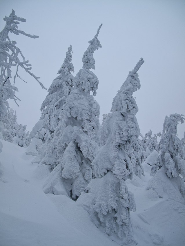 Stromy zabalené ve sněhu