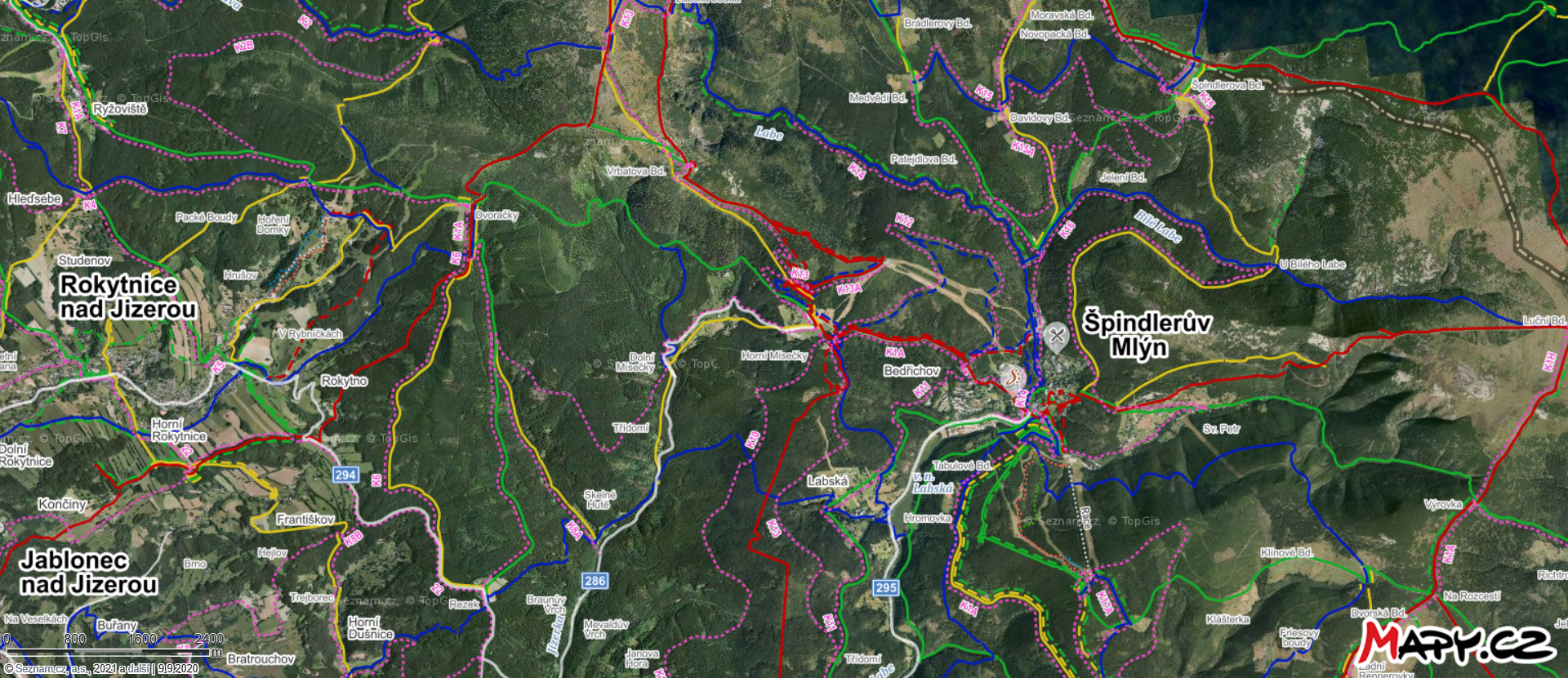 poloha Špindlerova Mlýna vzhledem např. k Praze  autor: kalinka1631