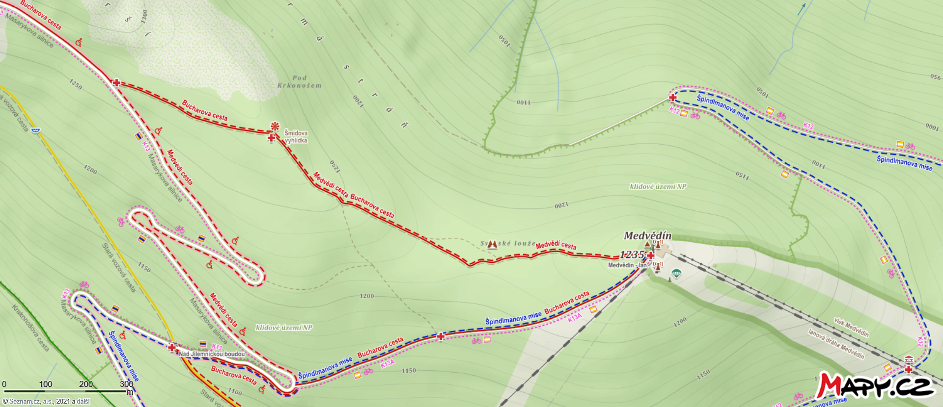 ze Špindlu lanovkou na Medvědín, přes Mísečky zpátky do Špindlu