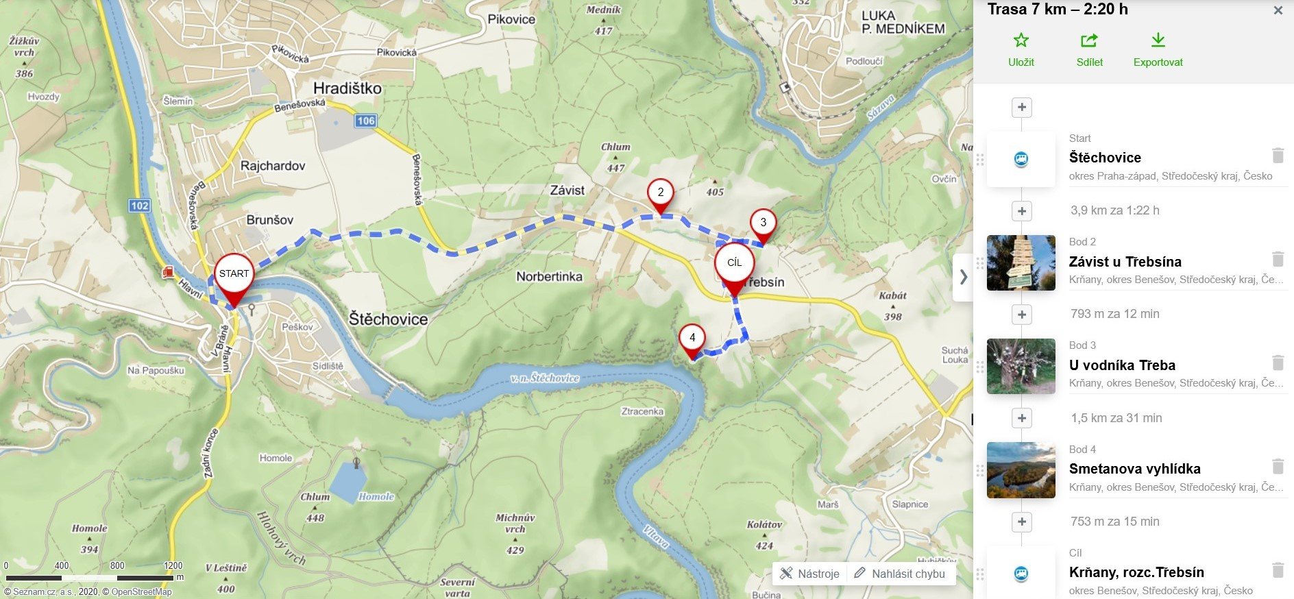Ze Štěchovic za vodníkem Třebsínem a na Smetanovu vyhlídku.