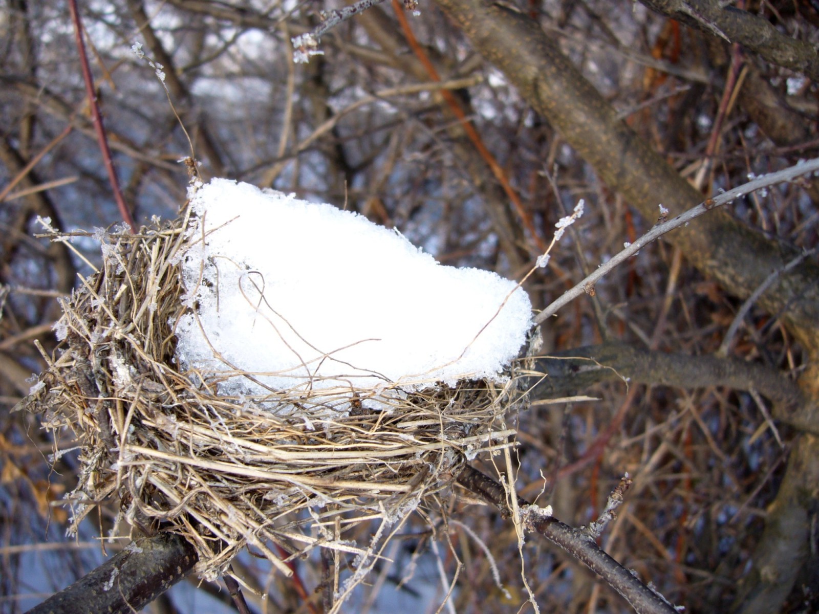 JÍDLO A PITÍ Z BATOHU, PROSTŘENO POD ZASNĚŽENÝM SMRČKEM