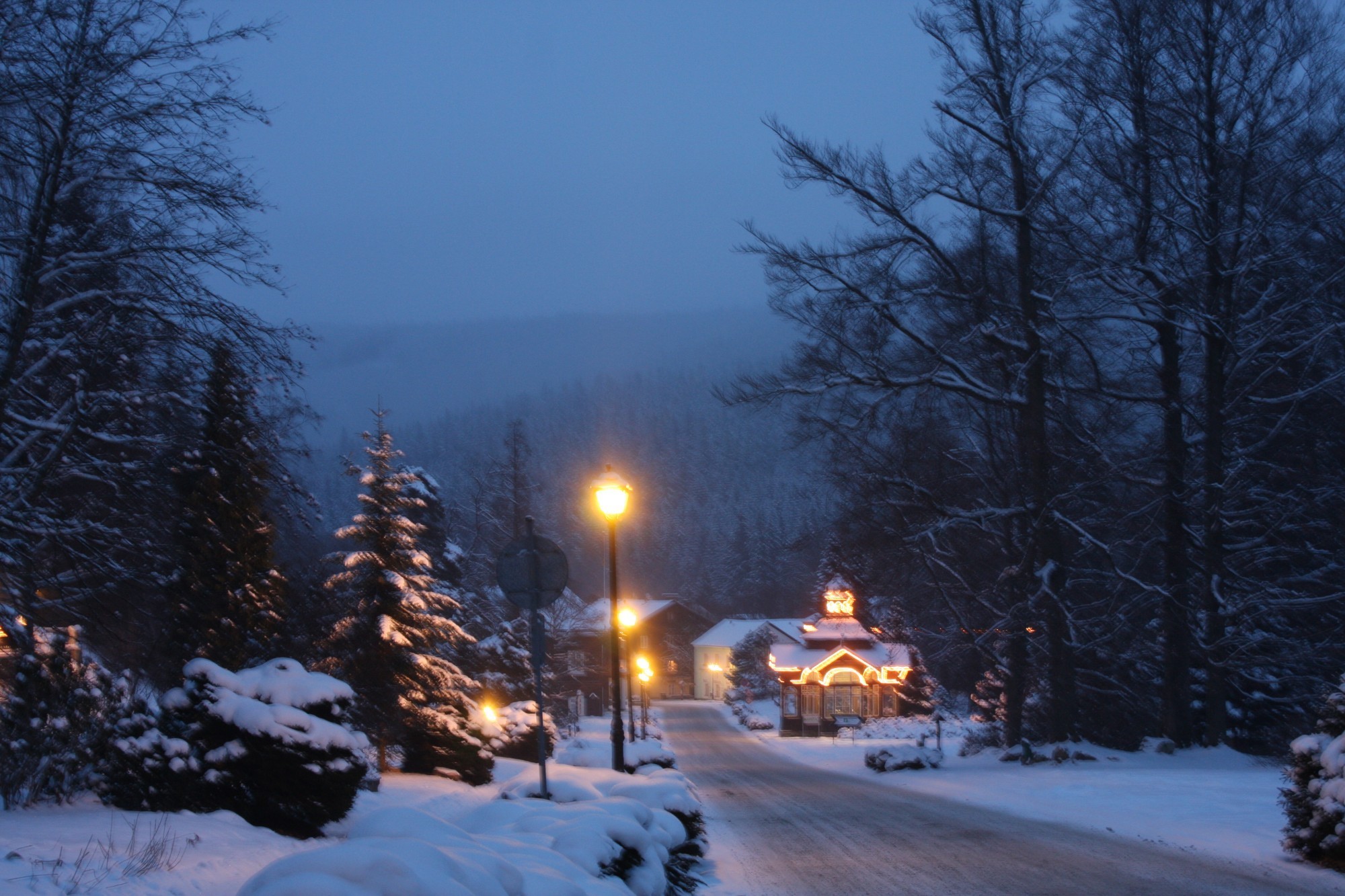 Nalezneme zde nepřeberné množství kulturních památek, starodávných budov. Kterou dokresluje zima, sníh a převislé rampouchy. Můžeme se zastavit u ledového monolitu, který zde vzniká každou zimu. Máme možnost navštívit budovu Letních lázní a dopřát si sanování či využít služby bazénového komplexu.