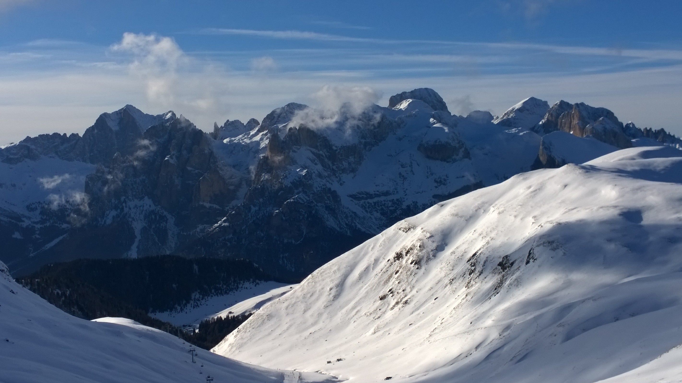 Val di Fassa je u nás dobře známá především milovníkům lyžování. Při našem pobytu jsme také češtinu na svazích zaslechli poměrně často. Není se ani čemu divit, protože podmínky pro lyžování jsou v této oblasti jednoduše ideální. Většina lyžařských středisek se nachází v nadmořské výšce od 2.000 do 2.500 m nad mořem. To samo o sobě zajišťuje dostatek přírodního sněhu i v současných „podivných“ zimách. Přesto se ale i v této nadmořské výšce nelze na přírodu 100% spolehnout a sněžná děla tak zdejší sjezdovky „přikrmují“ i sněhem technickým.
