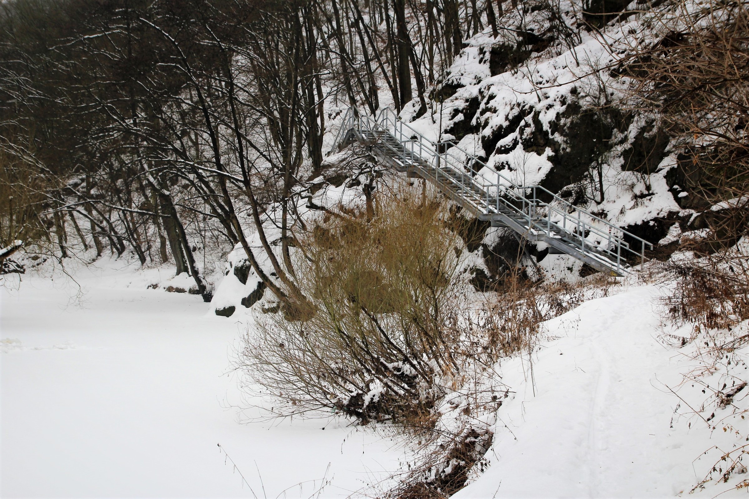 Výstup na skálu se zdolává po kovovém schodišti  autor: pasatur
