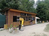 Před Zooparkem je hostinec Zájezd. Uvnitř bistro a kavárna a občerstvení Pod Velbloudem, my se najedli tam.