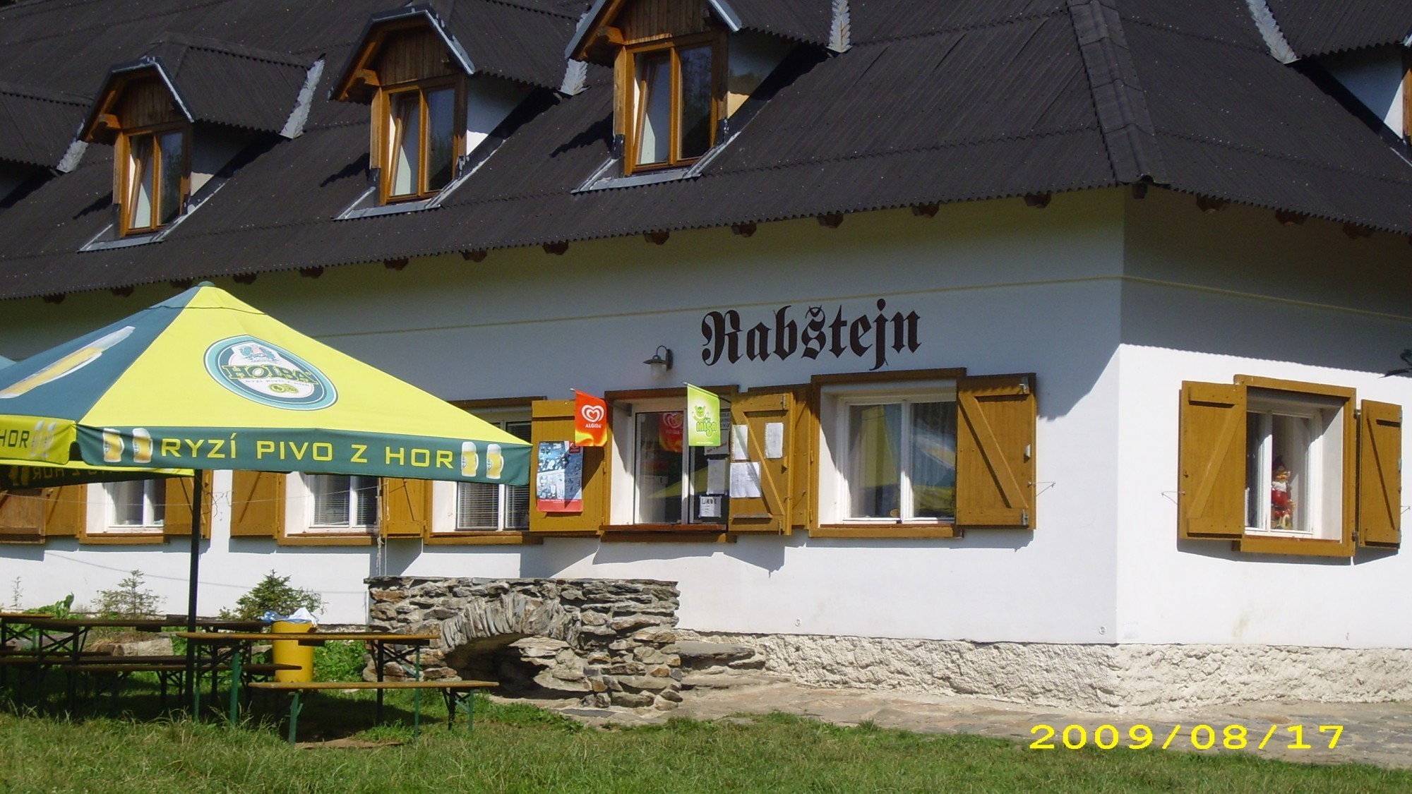 Autobusem ze Šumperku,nebo z Uničova,do Bedřichova na konečnou u bývalé továrny na letecké motory Adam.Odtud po silnici do kopce k hájence.Jde se po červená turistické značce.Od hájenky(rozcestník),stále po červené značce na zřícewninu hradu Rabštejn.Cesta je to dobrá,stále do kopce.Na hoře na louce pod hradem je Horská chata která nese jméno hradu.Na louce je možno stanovat,opeci si špekáčky,nebo se občerstvit v restauraci v Horské chatě.Zavřeno je pouze v pondělí.