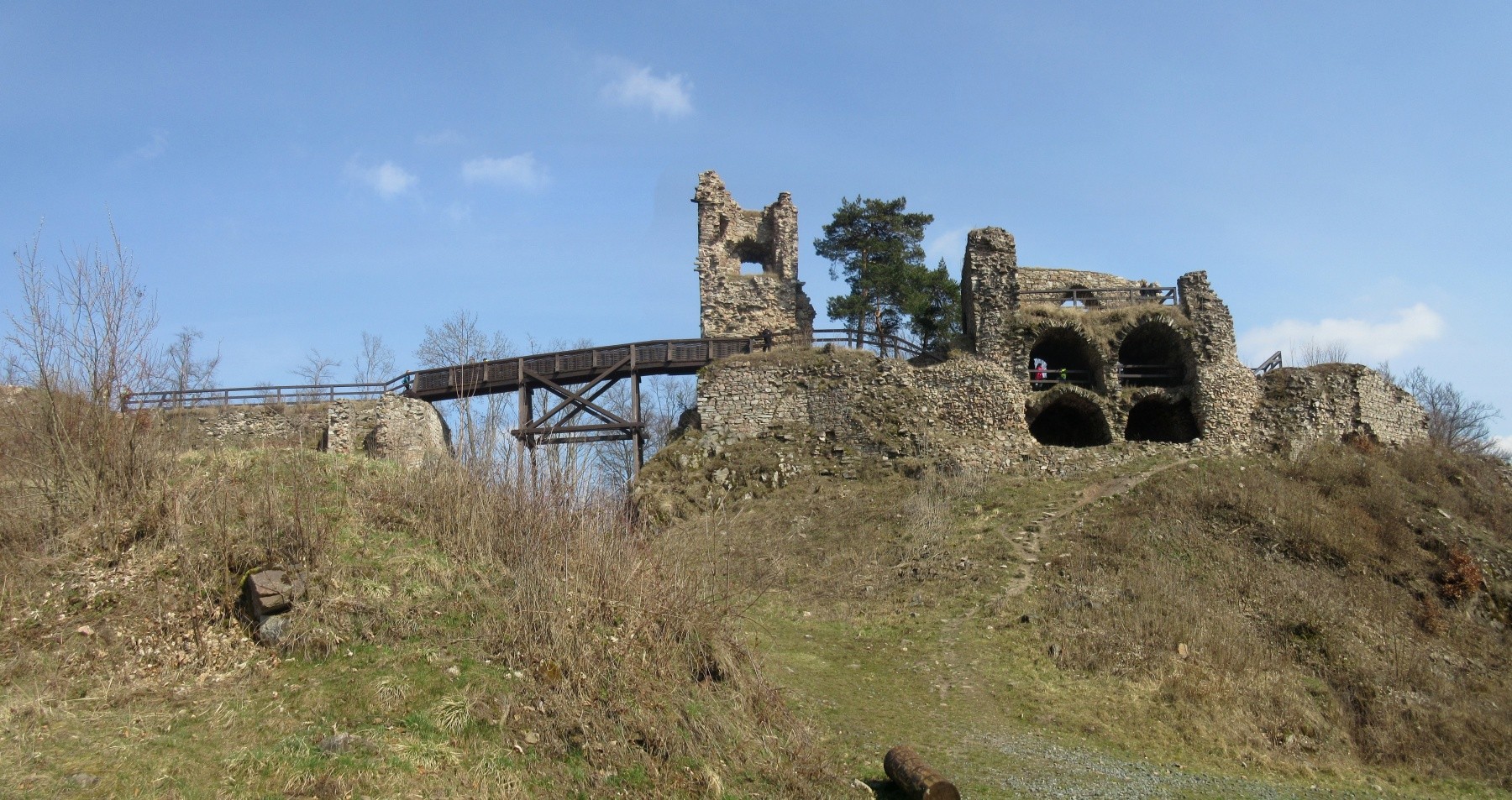 Vyrazili jsme na prodloužené Velikonoce na Českomoravskou vysočinu. Dva dny jsme se procházeli, byli jsme u pramene Svratky, přes kopečky jsme došli až do Nového Města na Moravě, prohlédli jsme si i lyžařský areál Vysočina arénu. Teď jsme byli na hradě Pernštejn, ještě máme chvilku času, tak jedeme na tuto zříceninu, kterou nám ve Žďáru nad Sázavou doporučili, jako místo hezkého výhledu.